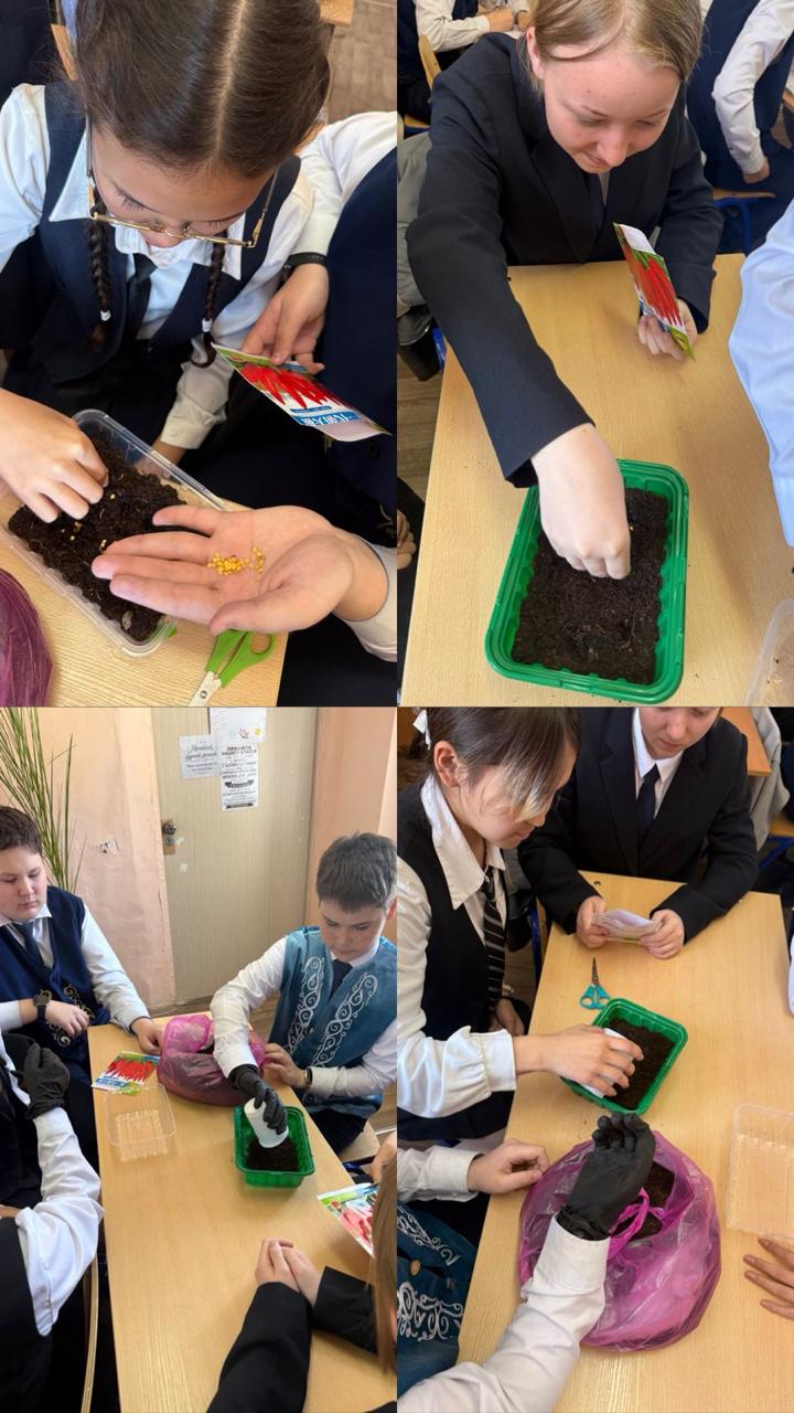 Экологиялық мәдениетті қалыптастыру, табиғатқа жанашырлық пен жауапкершілік сезімін арттыру мақсатында 8 «С» сыныбында «Экологиялық тәрбие» тақырыбында тәжірибелік іс-шара ұйымдастырылды. Іс-шара барысында оқушылар биология сабағында көкөніс егу жұмыстарын жүргізді.